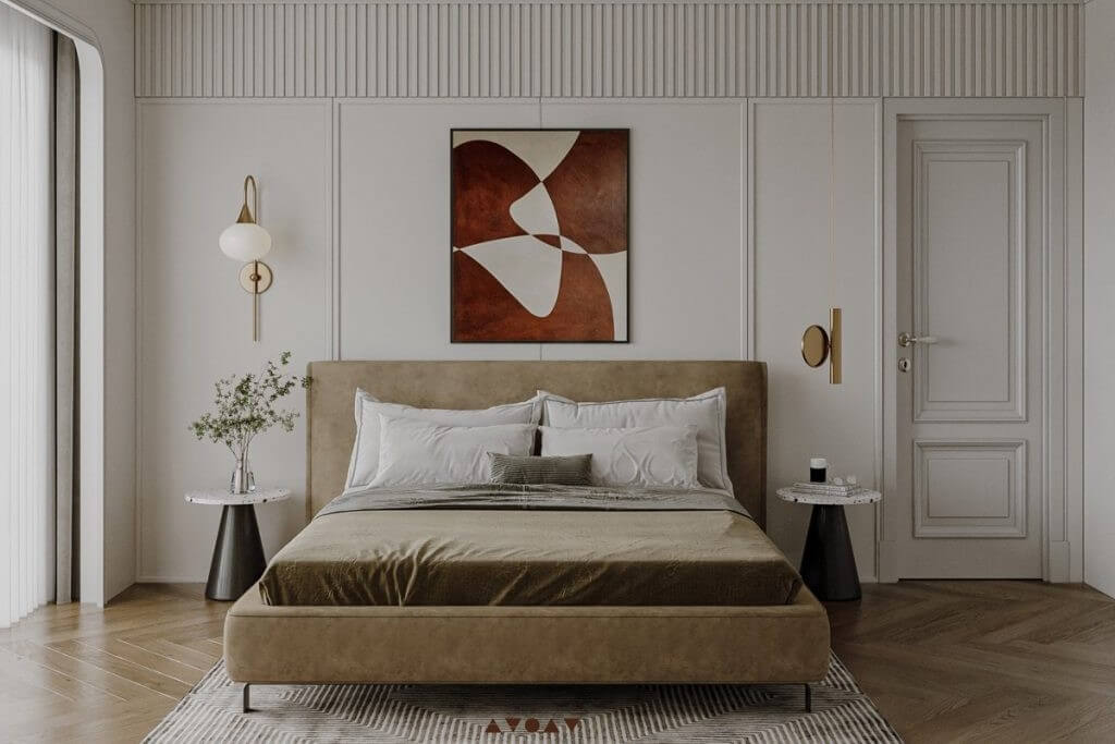 Nello stile classico tradizionale tutto concorre a un’estetica di ricchezza controllata: i lampadari in cristallo diventano il fulcro delle stanze, le pareti si rivestono di boiserie o carte da parati damascate, e l’arte — tra quadri monumentali, sculture e specchi — definisce un senso di misurata teatralità. Le palette cromatiche sono calde e sofisticate: bianco avorio, crema, tortora, beige e oro satinato, talvolta con accenti caramello o bronzo. L’insieme trasmette un’idea di comfort elegante e senza tempo.
